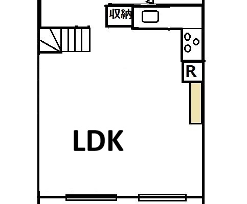 キッチンをたてにして、ダイニングテーブルを真横にくっつけるという間取りです。